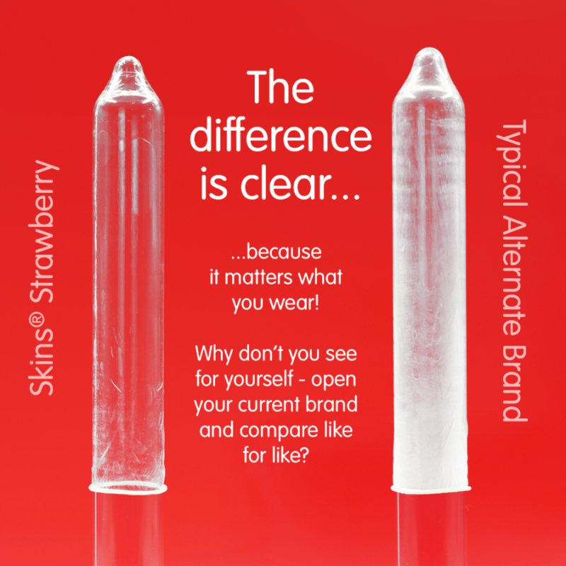 Maak kennis met onze nieuwe Strawberry 4-pack, met een strak, gebruiksklaar design en tot 33% meer condooms dan de marktleider. Voeg een klassieke fruitsmaak toe aan uw assortiment met Skins Strawberry condooms. Deze condooms zijn gemaakt van hoogwaardig natuurlijk latex voor een transparant, natuurlijk gevoel en voelen als een tweede huid zonder in te leveren op sterkte of veiligheid. Ideaal voor retailers die een populaire en vertrouwde smaak willen aanbieden voor extra intimiteit en bescherming.